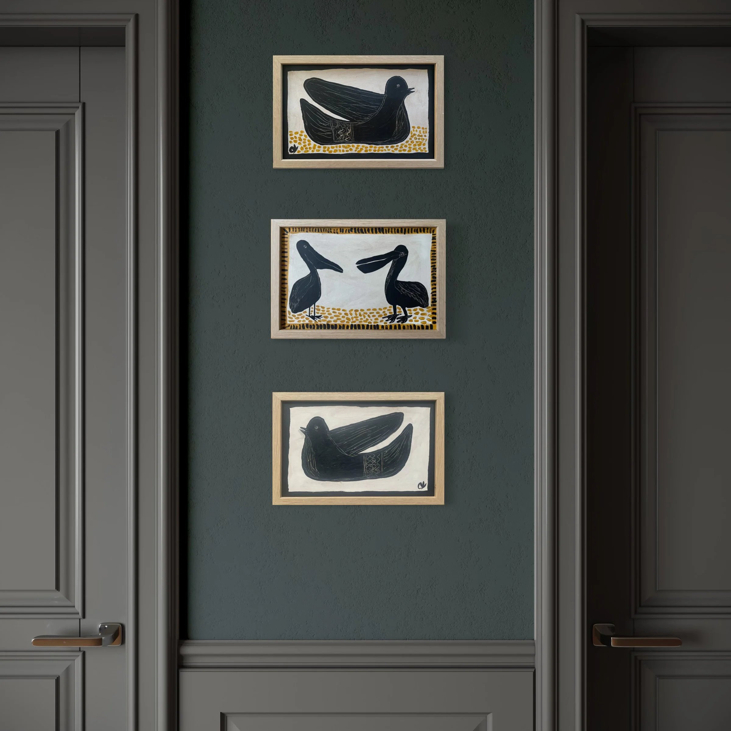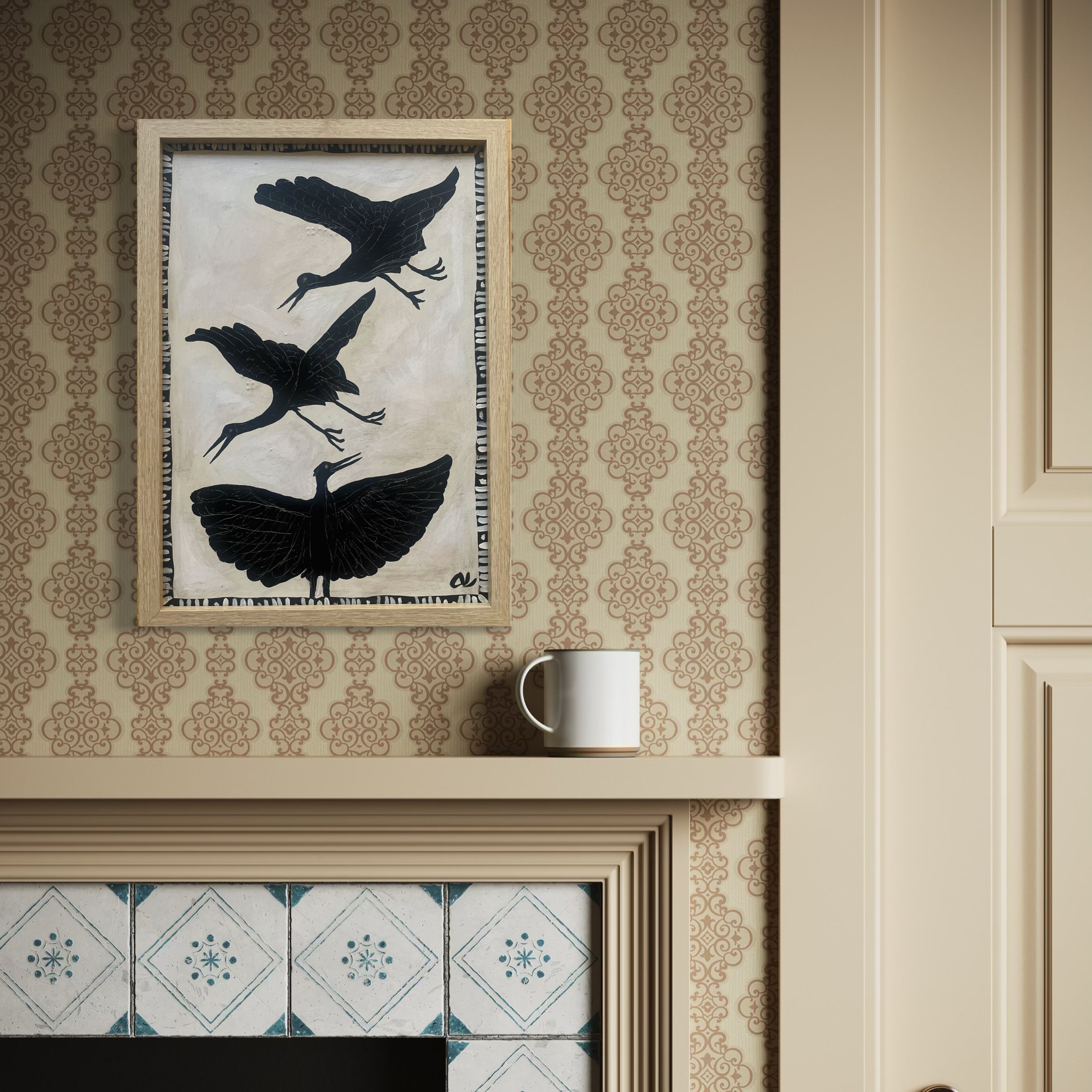 T h R e E . c R a N e S . 32 x 44cm . paint & wax on canvas